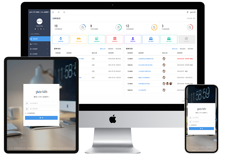智能办公管理系统采用Web H5技术开发,支持手机、电脑、平板多端同步管理,实现异地协同,多点办公,随时使用,帮您摆脱时间和空间的限制,带您进入移动办公新时代。